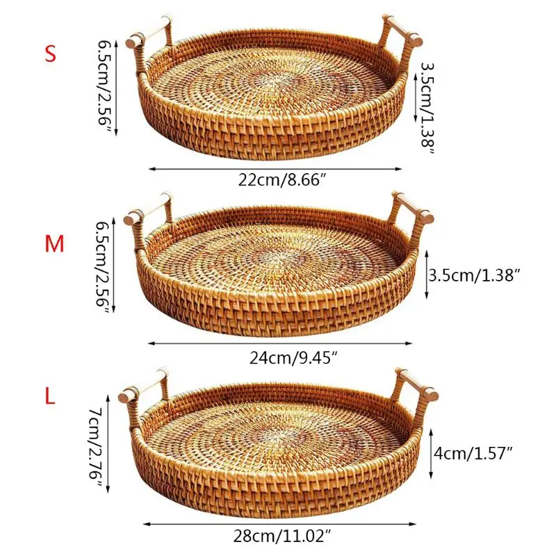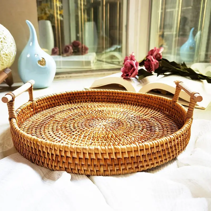 OOTDTY круглая корзина для хранения из ротанга с ручкой, плетеная вручную тарелка для хлеба, фруктов, десертов, держатель для витрины для завтрака