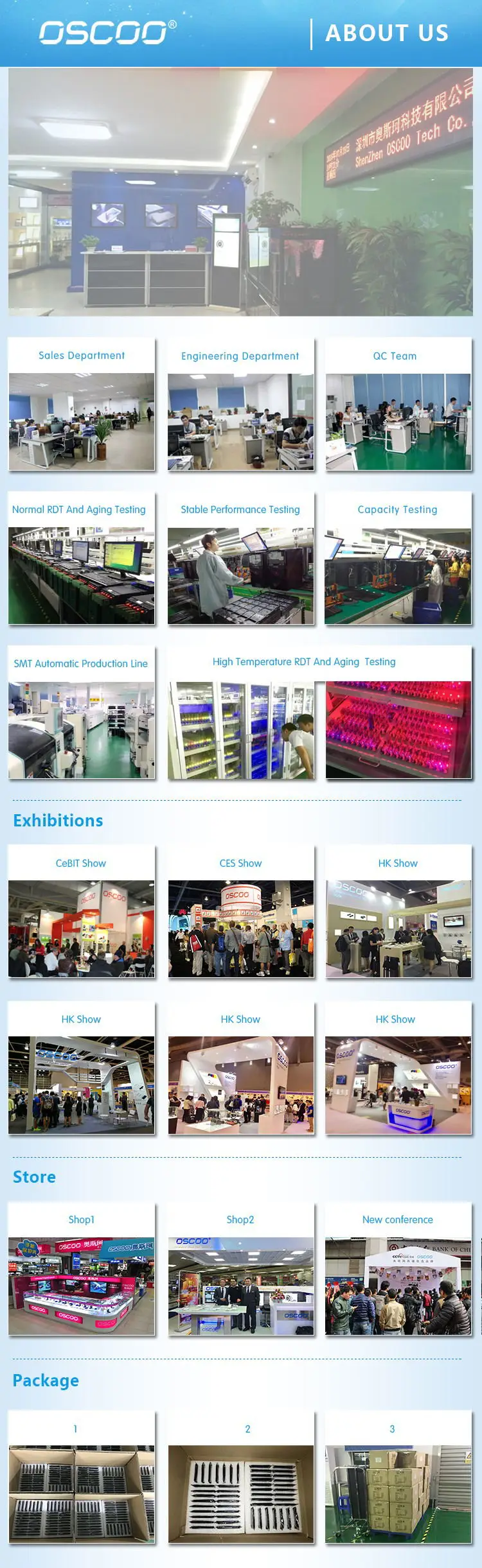Shenzhen OSCOO Tech Co., Limited была основана в 2004 году, которая специализируется на SSD (твердотельные накопители), DDR (DDR3 и DDR4), USB флеш-накопители и другие Компьютерные периферийные устройства. Наша фабрика является национальным высокотехнологичным предприятием с сертификатами ISO 9001:2008 и 14001: 2004.Мы строго контролируем качество:1. Мы являемся профессиональным производителем SSD с многолетним опытом управления качеством.2. Мы ориентируемся на каждую деталь продукции.3. Каждый продукт проходит тщательное тестирование один за другим, прежде чем выходить из фабрики.