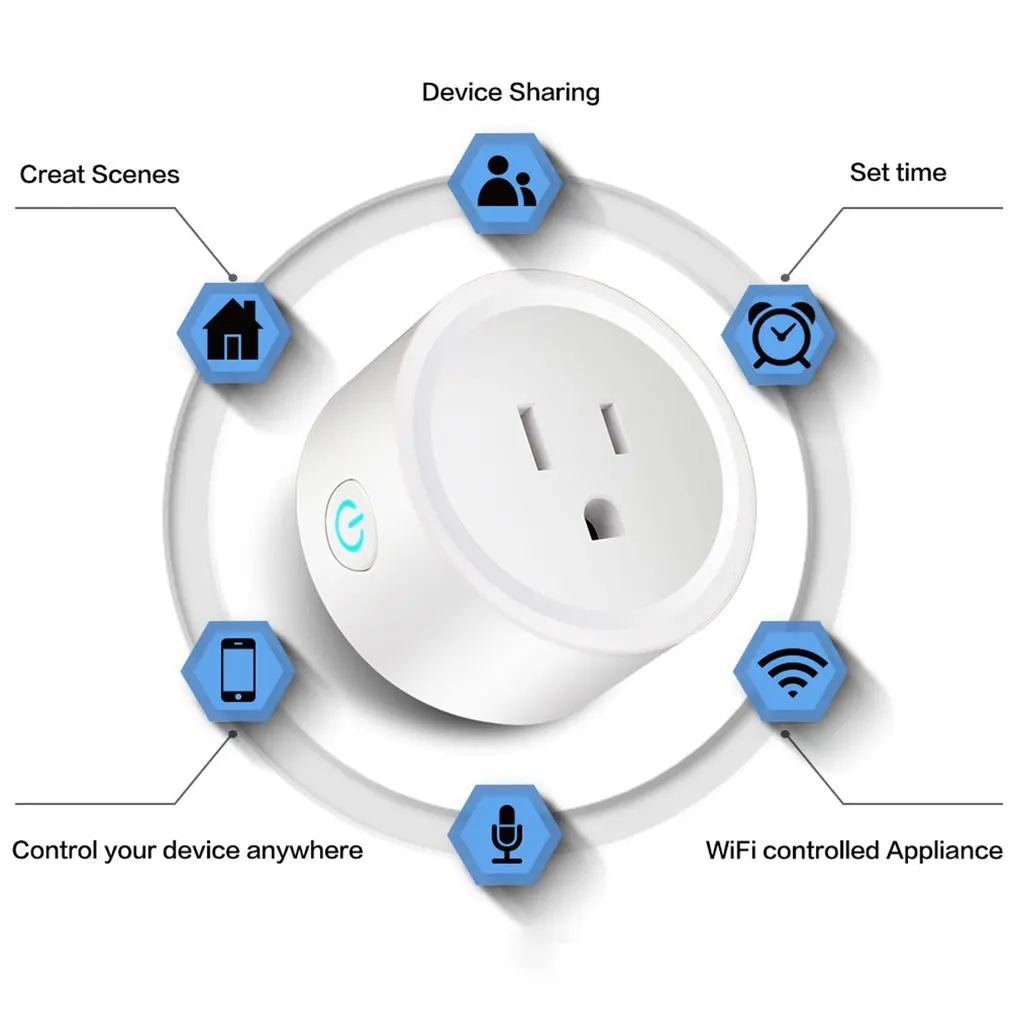 1. Голосовое управление: умная вилка, может использоваться с Alexa и Google Home Assistant. Просто используйте Alexa или Google Home Assistant для управления домашними устройствами через умное гнездо. Штепсельная Вилка WIFI может быть установлена без ступицы. Gosund Alexa разъем может работать со стабильным 2,4 ГГц сети.