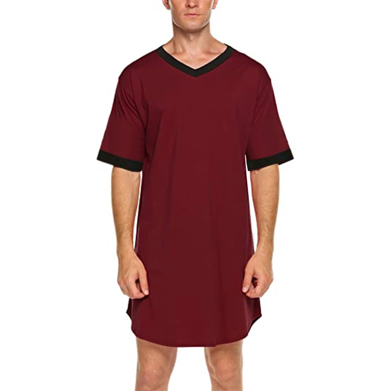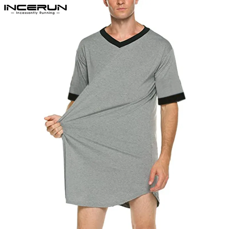Ночная сорочка INCERUN мужская с коротким рукавом и V-образным вырезом, удобная домашняя одежда в стиле пэчворк, халат свободного покроя, S-5XL
