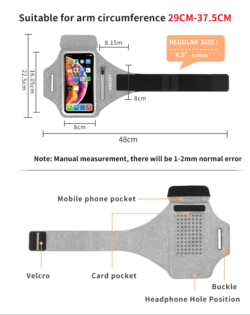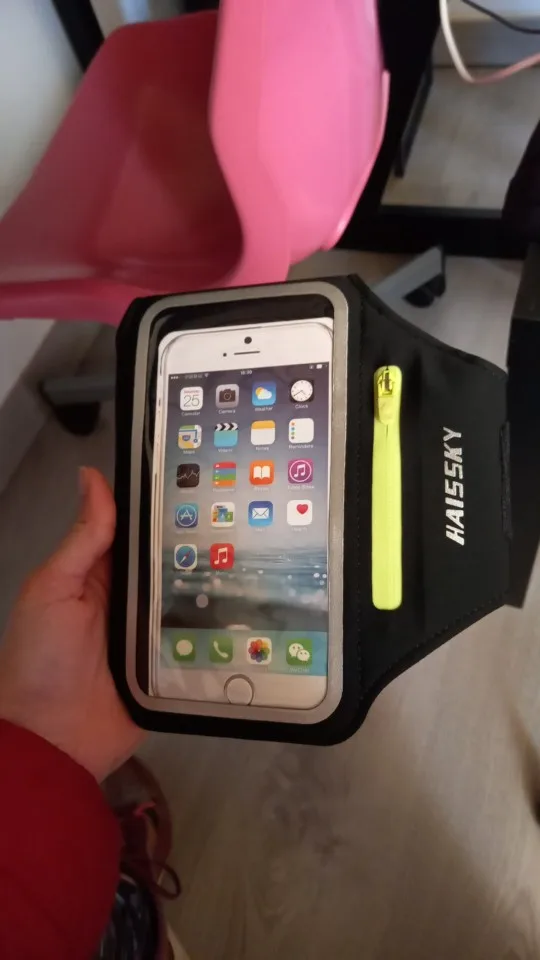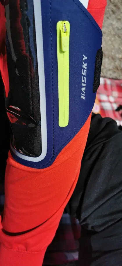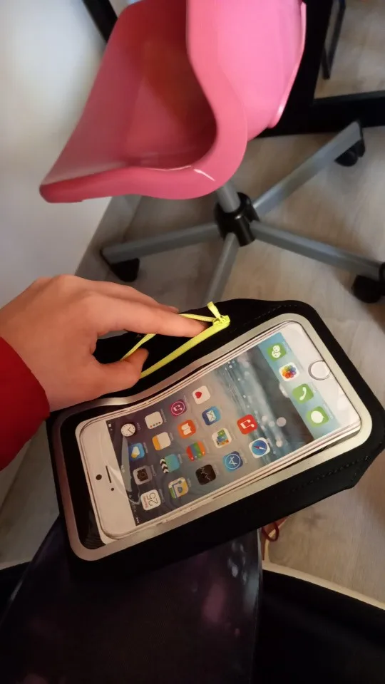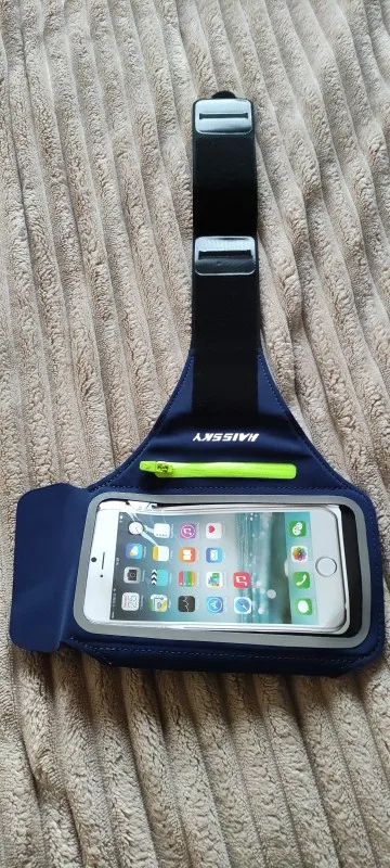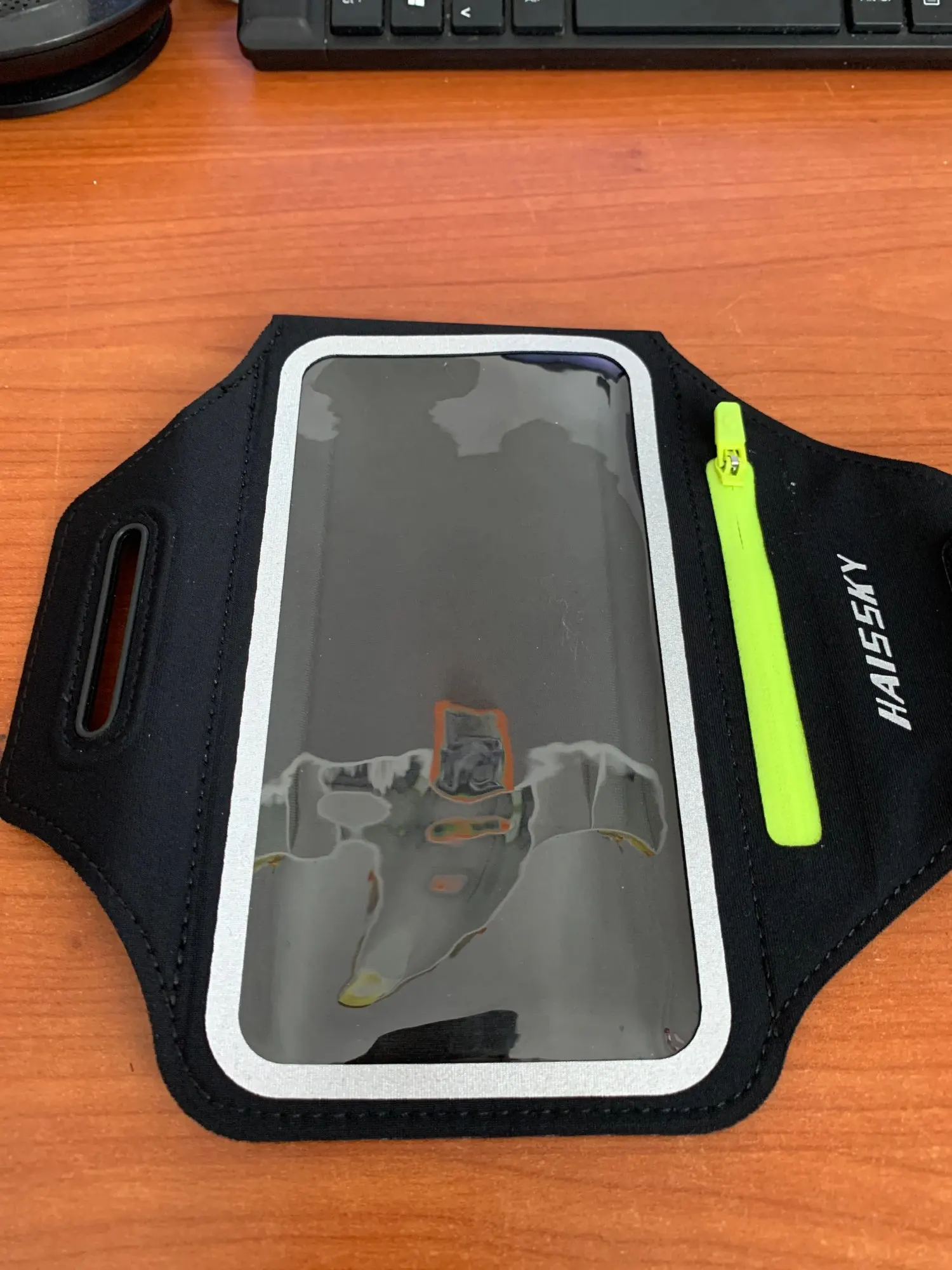 доставили за 10 дней! немаленький сяоми редми нот 9 про (6,67'")поместился легко, надел держатель с телефоном на флисовую фуфайку на предплечье.На пробежке держалось все отлично и при этом рука особо не перетягивалась.