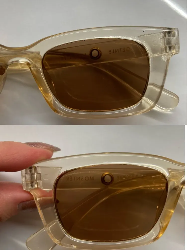 Очки крутые, конечно, но оказались больше и темнее чем я ожидала. Бежевый цвет больше цвета сгущенки, нежели того цвета, которого я хотела. Но все равно очки очень качественные, пластик плотный, ничего не болтается. 8/10