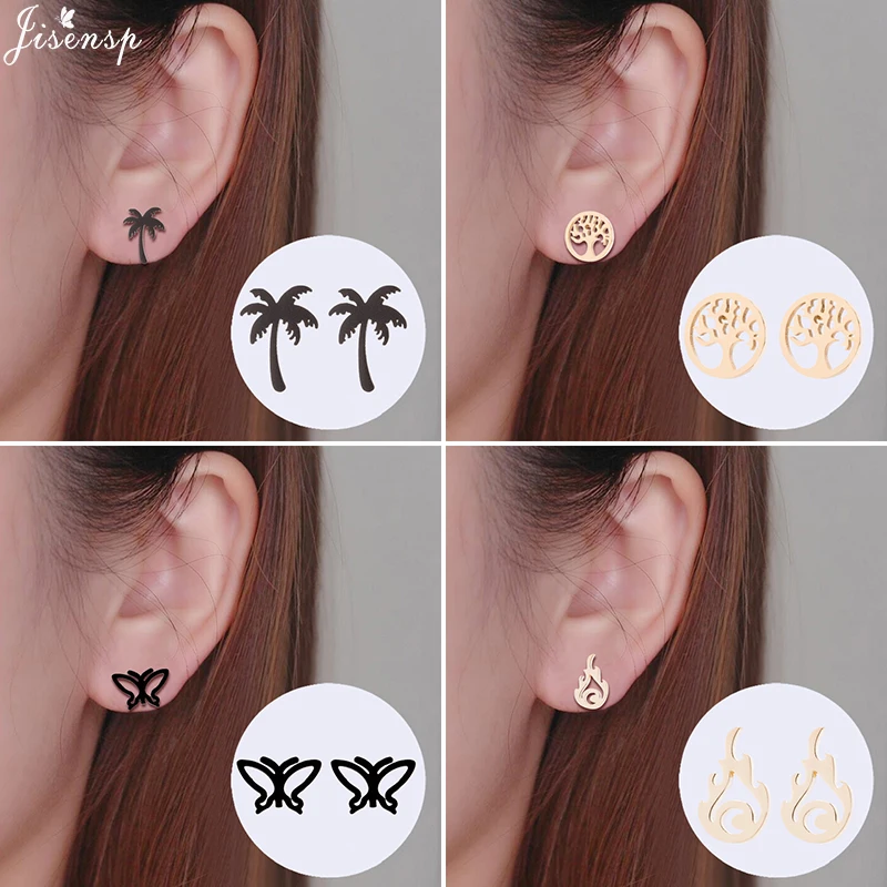 Jisensp Гавайский стиль летние пляжные кокосовые гвоздики дерево серьги пальмы из нержавеющей стали серьги Бохо ювелирные изделия для женщин и мужчин
