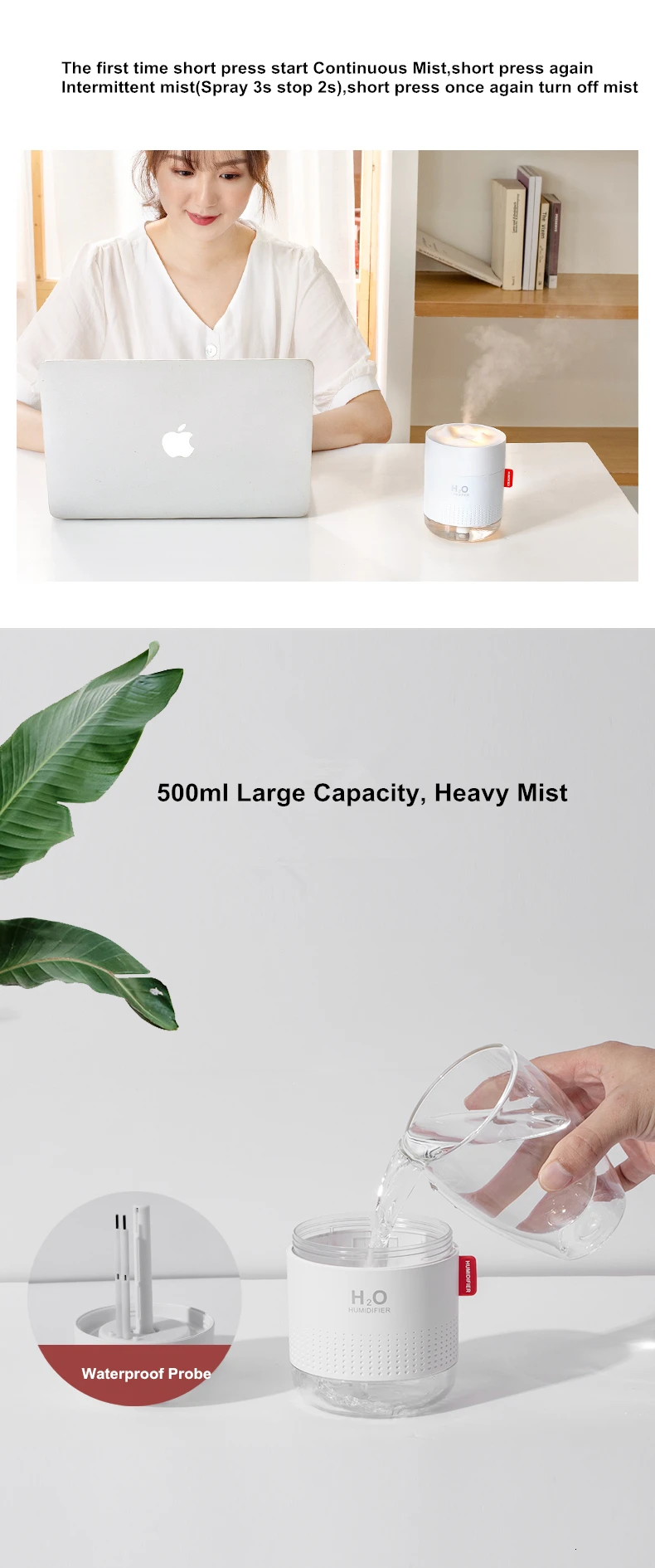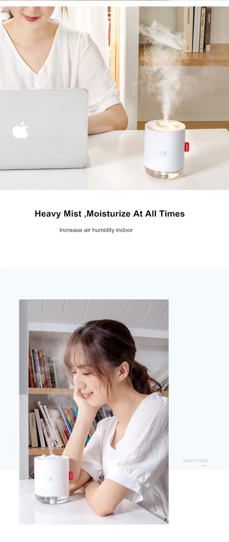 1. Романтический Теплый Успокаивающий ночной светильник 2. Увлажнитель с непрерывным туманом и прерывистым режимом тумана свободный обмен 3, малый размер большой емкости 500 мл последние работы 12 часов 4, изысканный Высококачественный искусственный внешний вид 5, тяжелый туман с ультра-дизайном