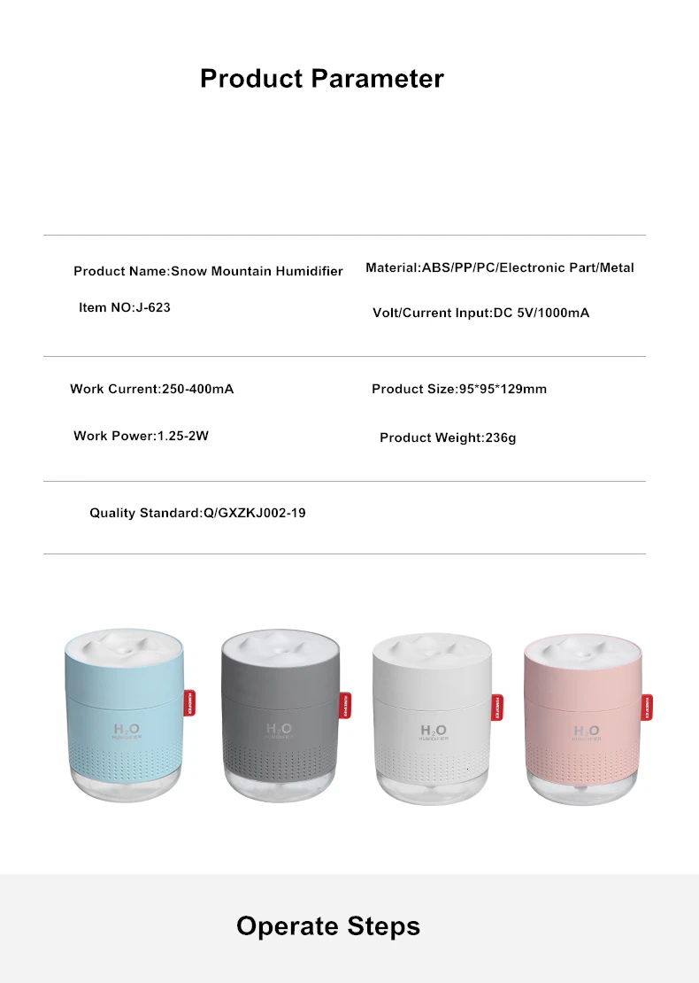 Объем резервуара для воды:500 мл Размер: 95*95*129 мм