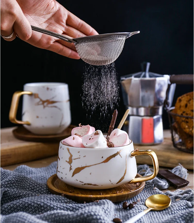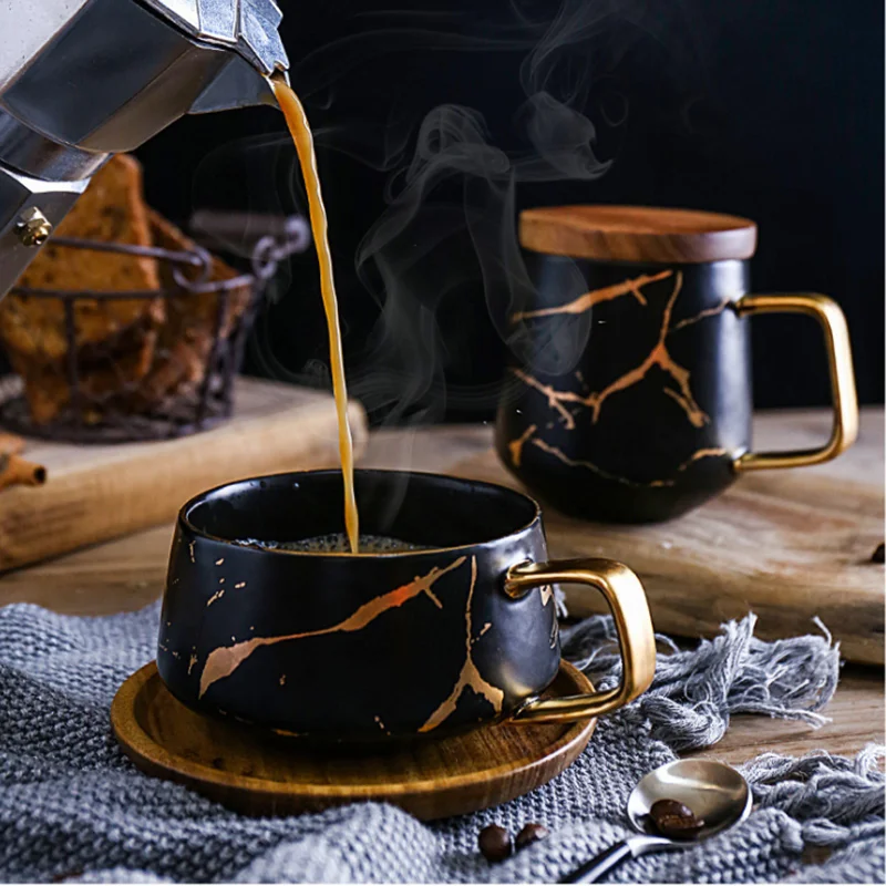 Кофейные кружки с мраморной золотой инкрустацией кружка для завтрак...