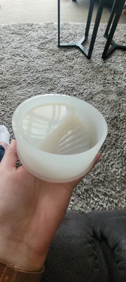 Качественная форма. Силикон плотный, держит форму, но если заливаете бетон, его нужно хорошо распределять, иначе будут выпуклости на стенках. Прежде чем вытаскивать бетонное изделие нужно дождаться что бы он достаточно хорошо подсохнет, иначе развалится, толщина стенок не очень большая. Обязательно соблюдение грамовок для смеси! На фото - моя 3я попытка сделать кашпо. С продавцом не общалась. До СПб заказ пришел за 3 недели.
