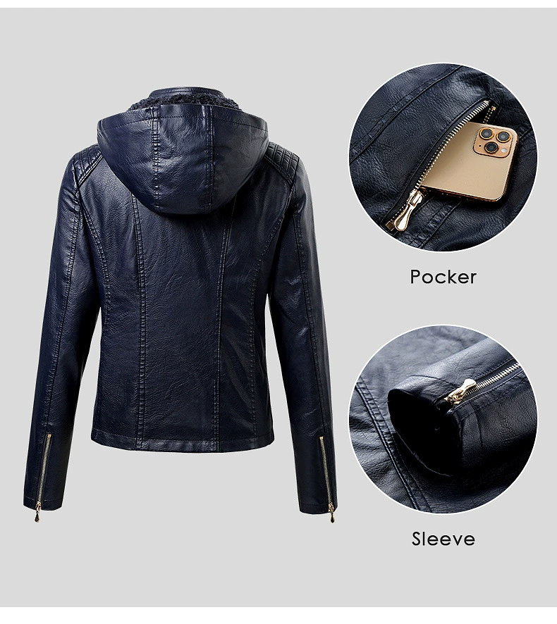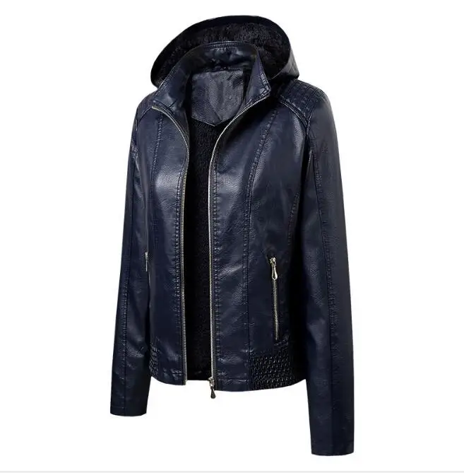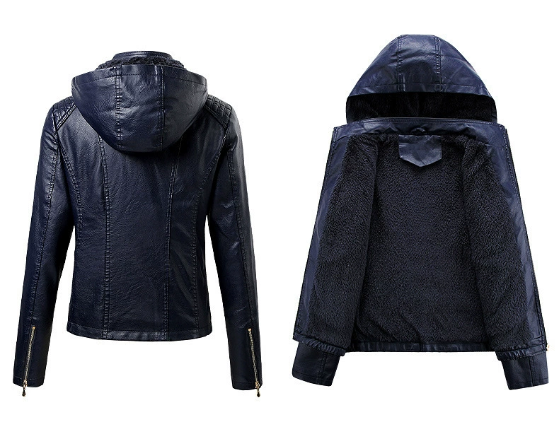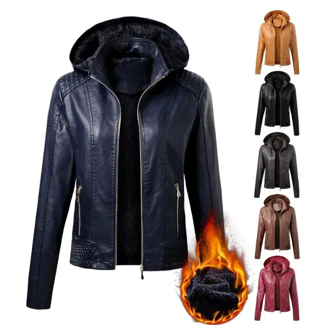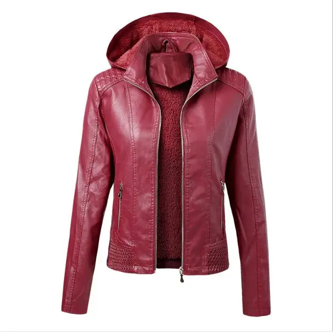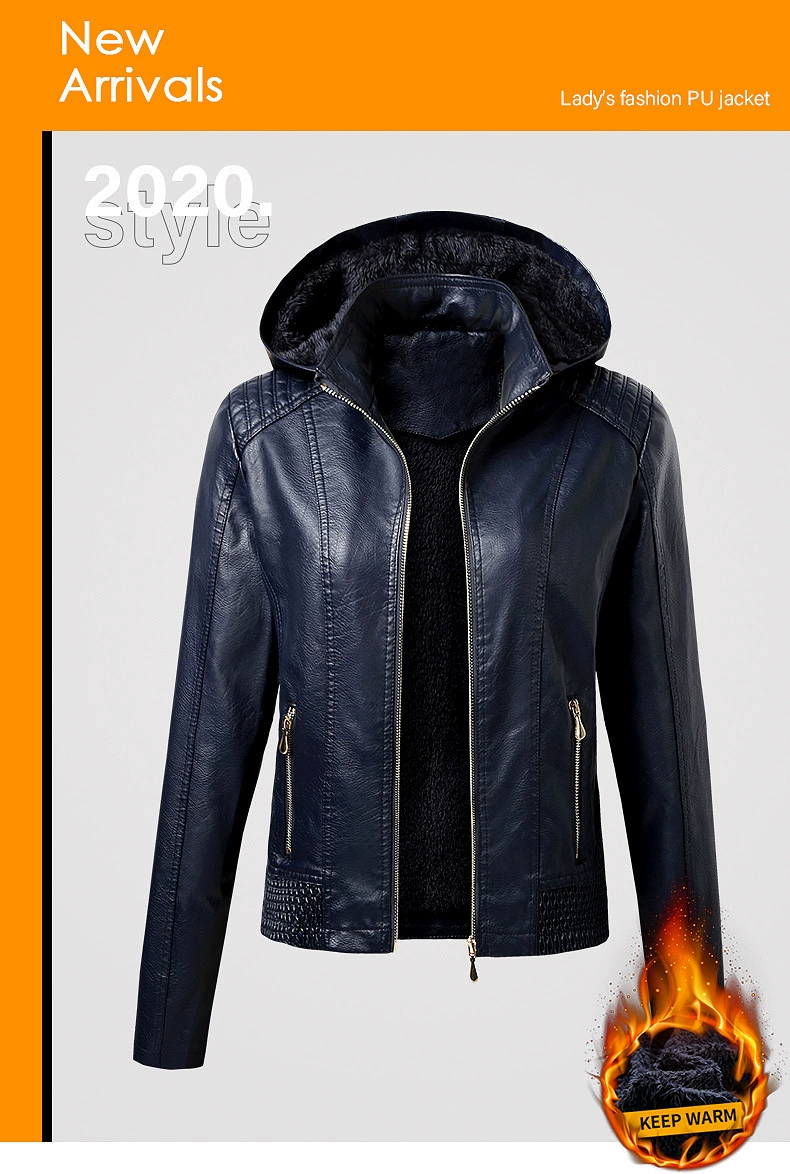 Осень-зима 2020 новый стиль кожаная куртка со съемным отложным воротником с длинными рукавами плюс бархатная Женская куртка на молнии