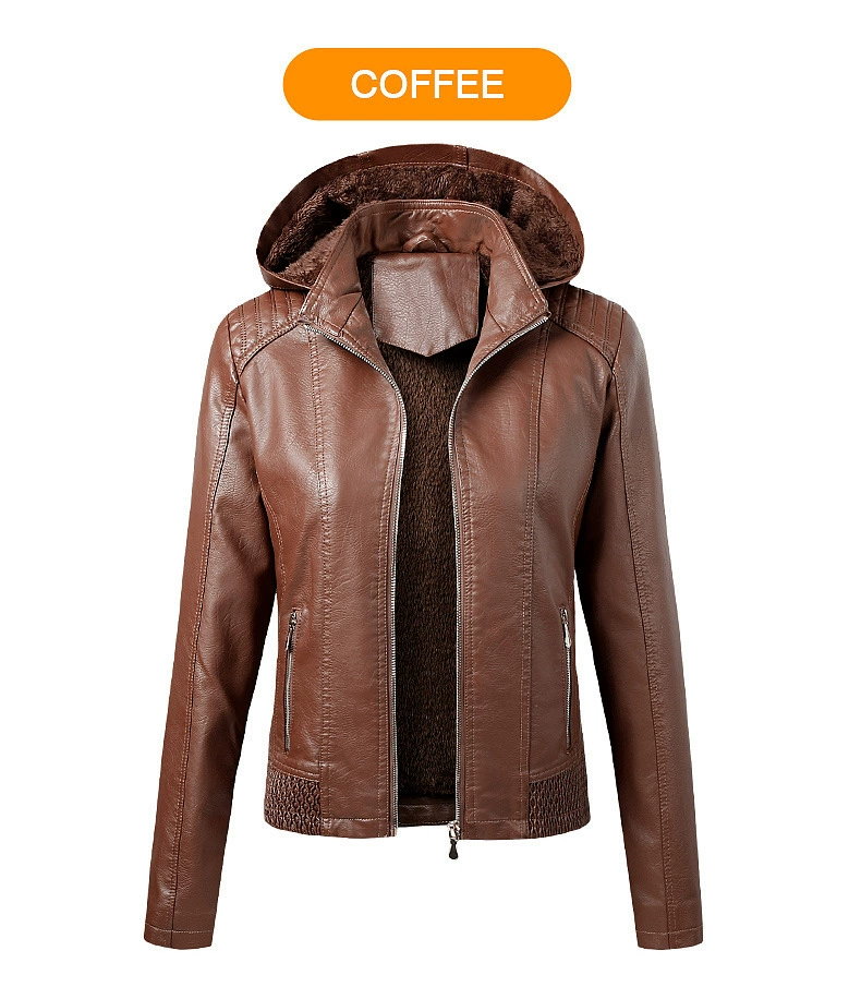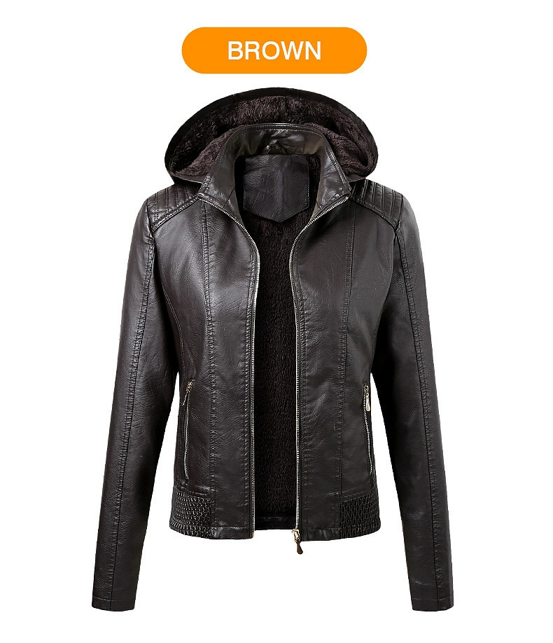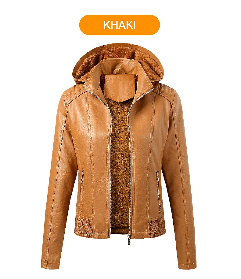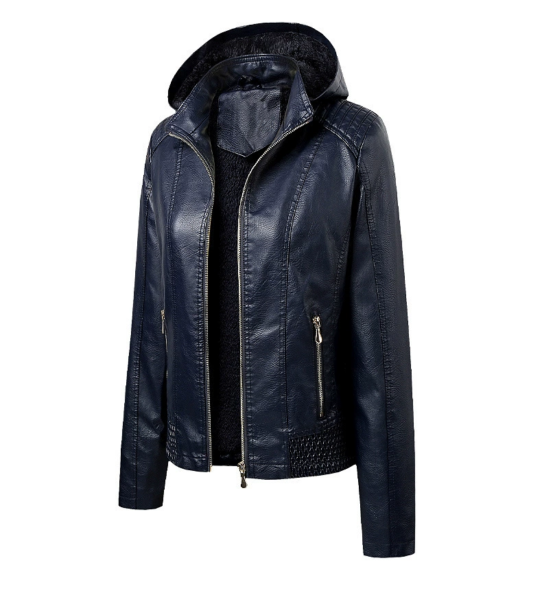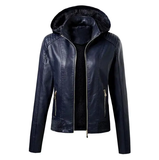 Осень-зима 2020 новый стиль кожаная куртка со съемным отложным воротником с длинными рукавами плюс бархатная Женская куртка на молнии