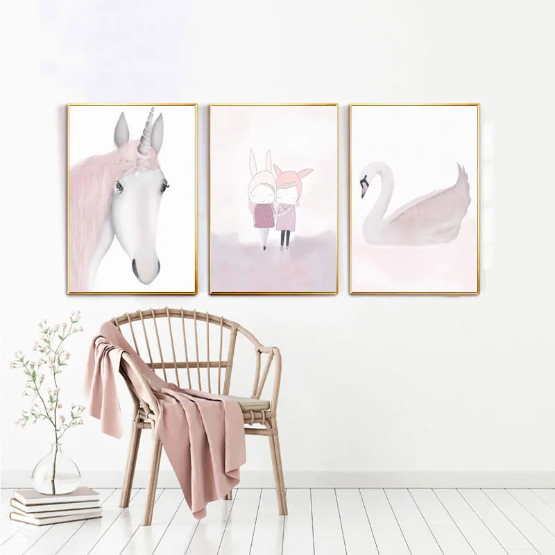 Скандинавский балет принцесса постер для детской комнаты Единорог н...