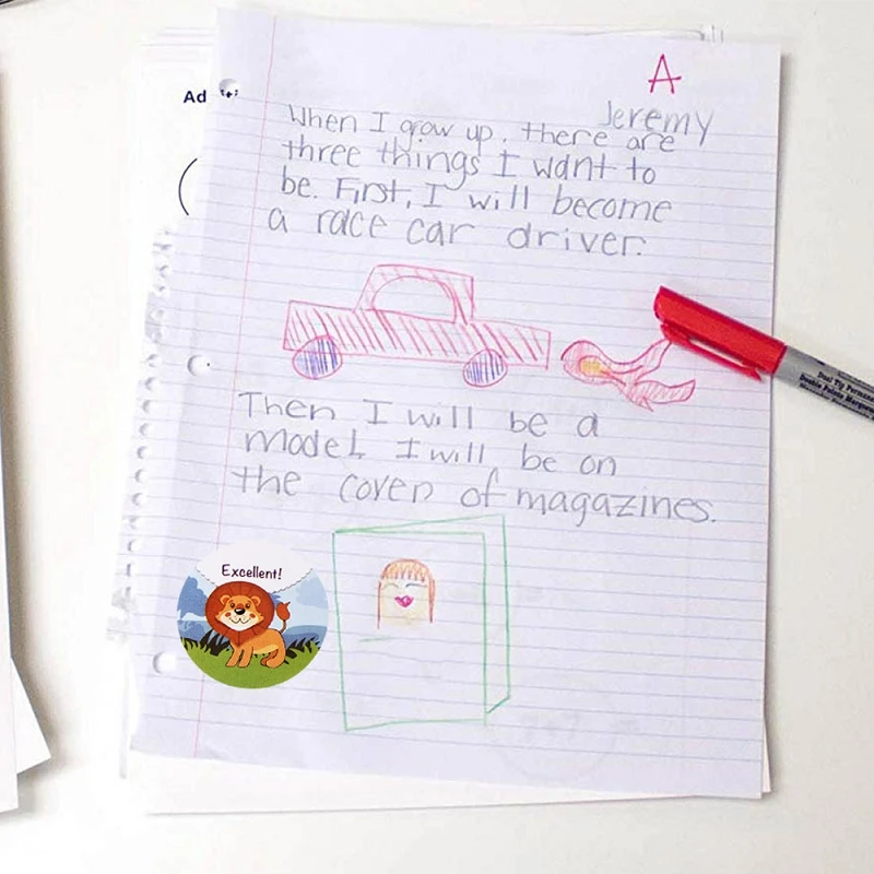 500 шт.рулон, наклейки в виде животных для детей и учителей