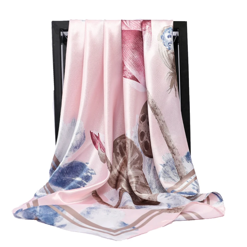 Женский шелковый шарф, модный цветочный принт, квадратный платок, женские роскошные брендовые шали, Шелковый женский шарф, сатиновый хиджаб 90*90 см