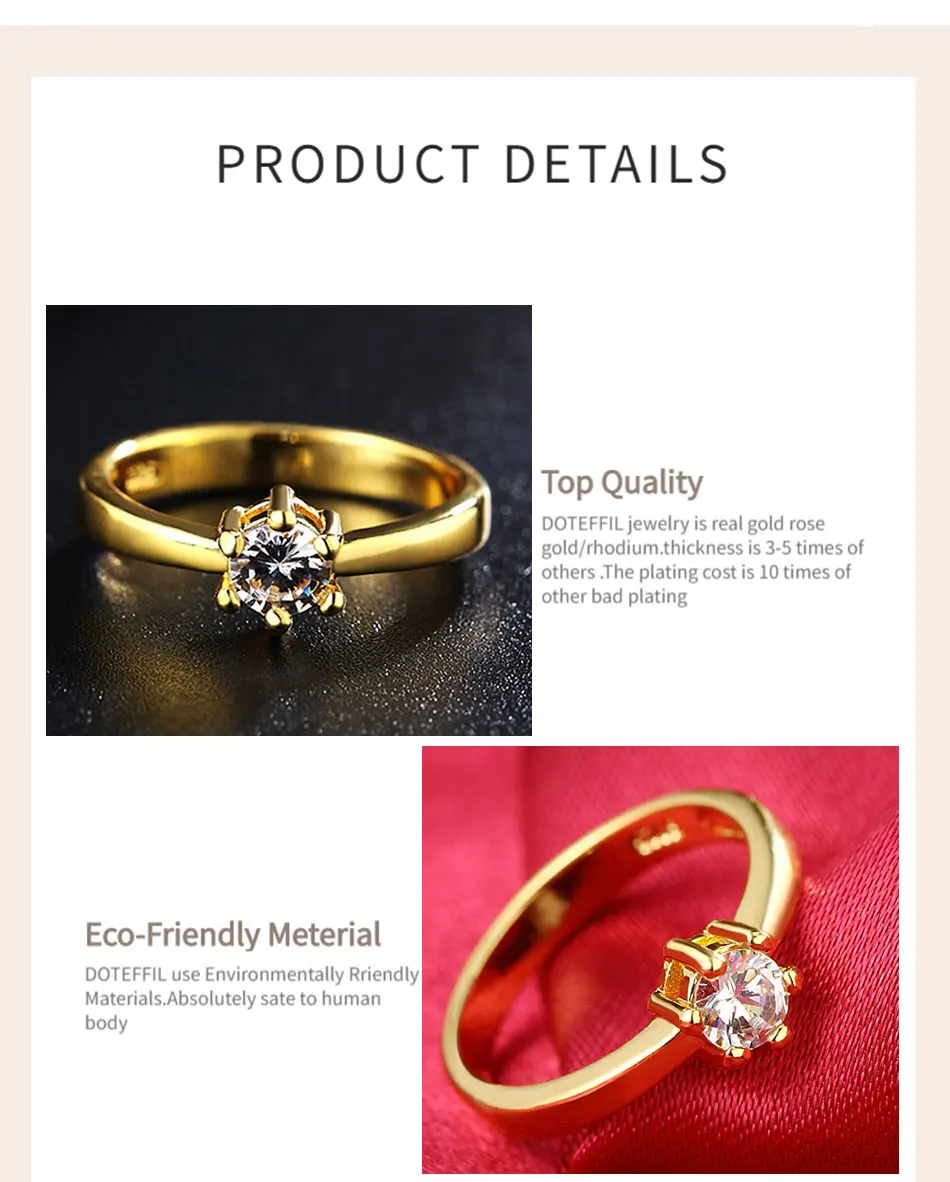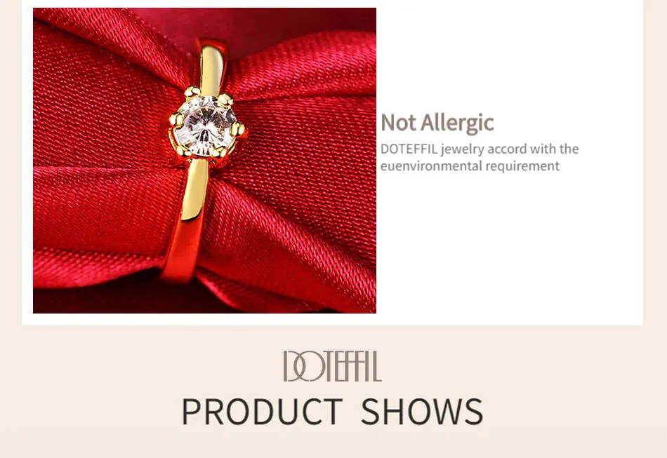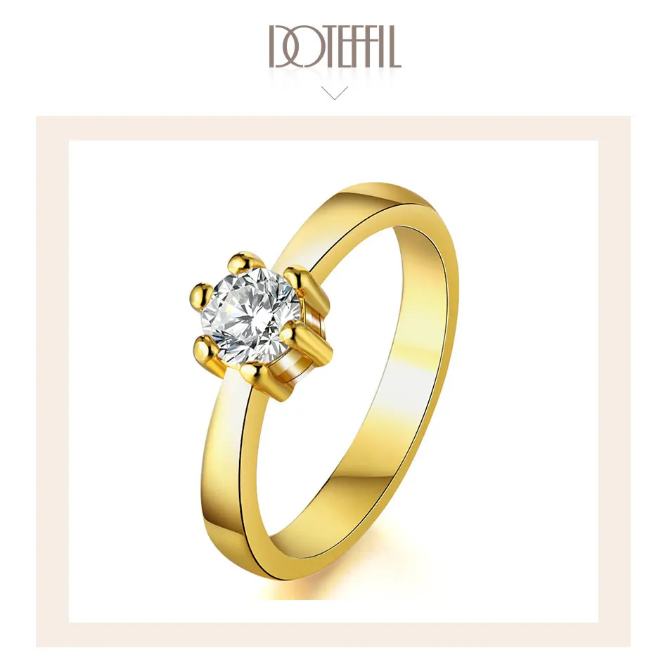 Женское кольцо DOTEFFIL, классическое кольцо из стерлингового серебра 925 пробы с шестью когтями из фианита ААА для свадебной вечеринки, подарочное очаровательное ювелирное изделие