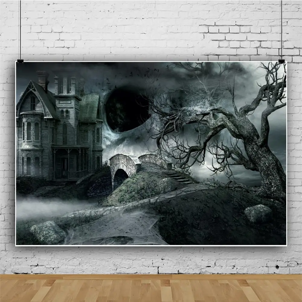 Хэллоуин фон лунный замок летучая мышь страшный мост ветка дерева Фон фотографии фоны для фотостудии виниловый Фотофон