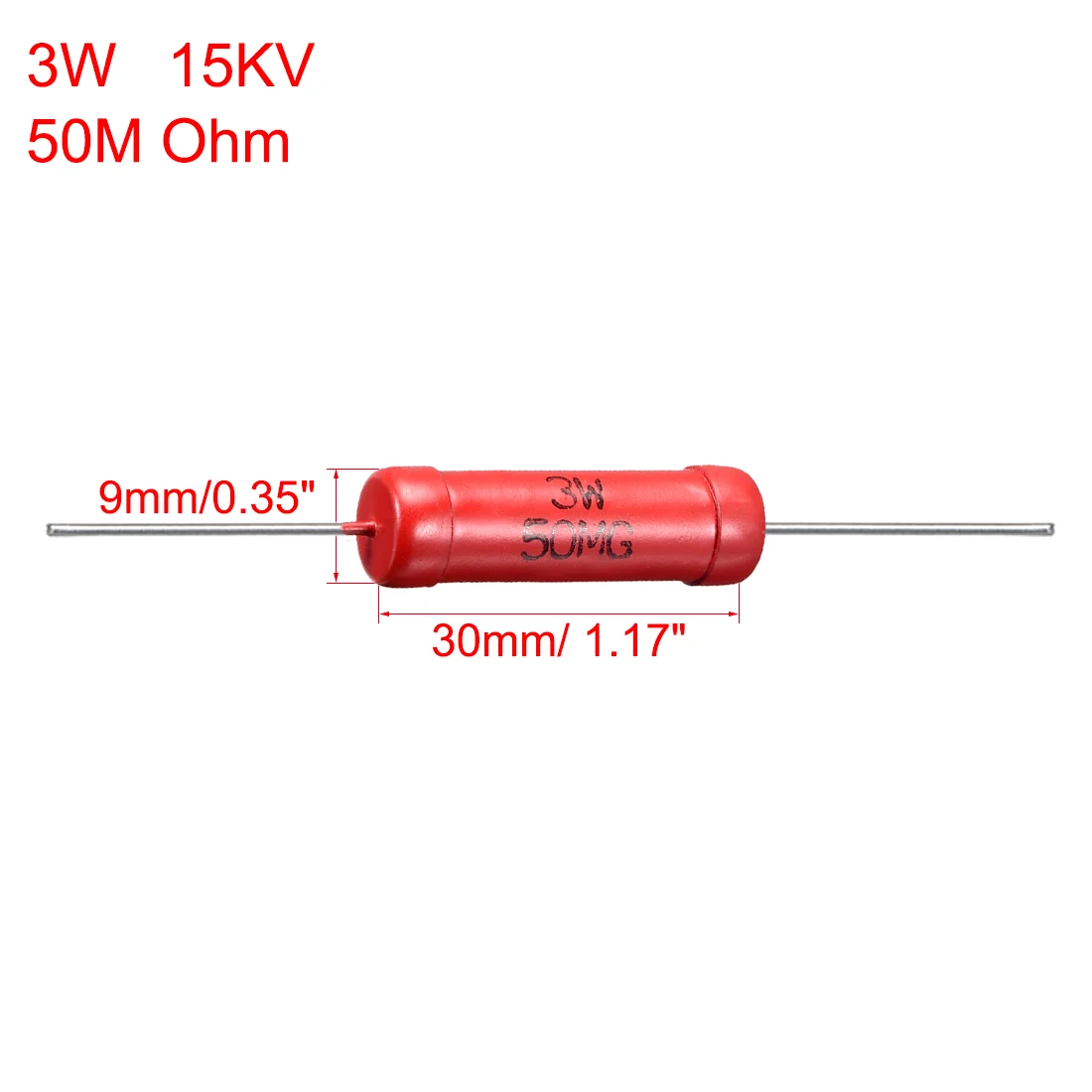 Uxcell, 2 шт., 3 Вт, 5 Вт, 200 ком-500 МОм, красный, номинальная мощность, высоковольтное стекло, глазурь, свинцовый пленочный резистор, 3 Вт, 50 мОм