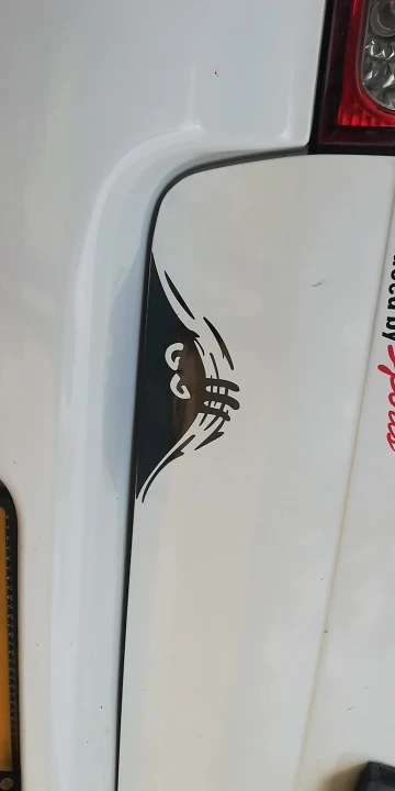 Наклейка очень хорошая, но я заказал ту, у которой красные глаза, и нормальная и довольно согнутая... Я думаю, что было бы лучше, если бы они упаковали его полностью плоско.