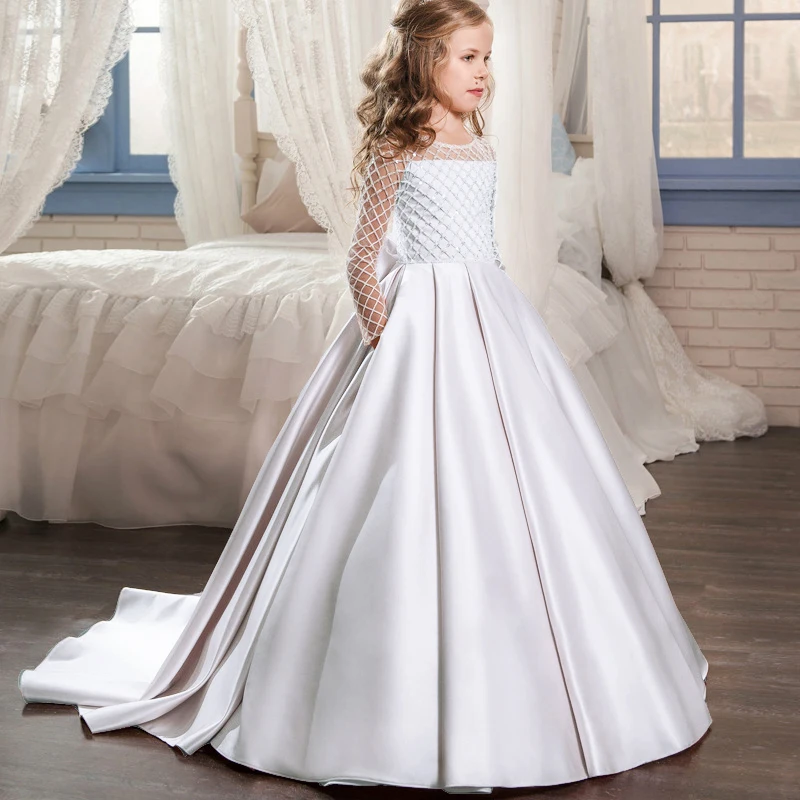 Платья для девочек на свадьбу, тюль, кружево, длинное платье для де...