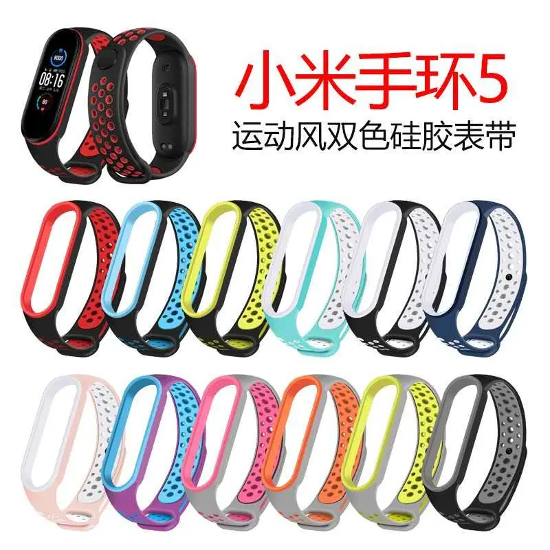 Силиконовый ремешок для Xiaomi Mi Band 5 6 4 3 пористый двухцветный...
