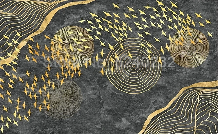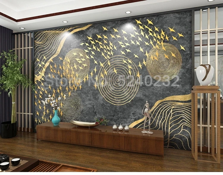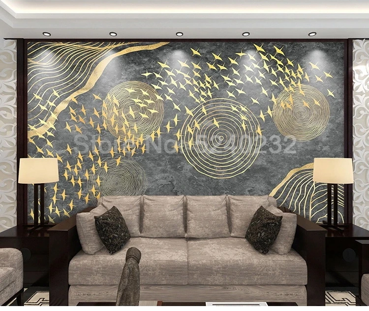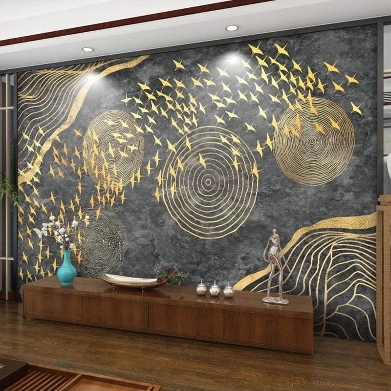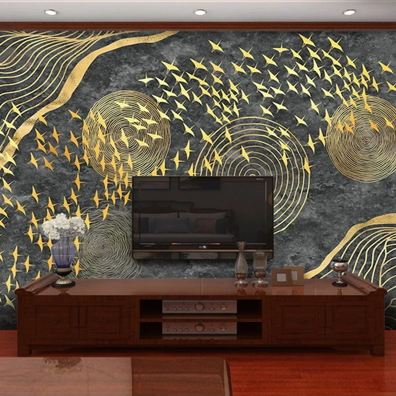 Пользовательские обои 3D рельефные золотые Летающие птицы, новый китайский стиль, гостиная, диван, ТВ фон, настенная живопись