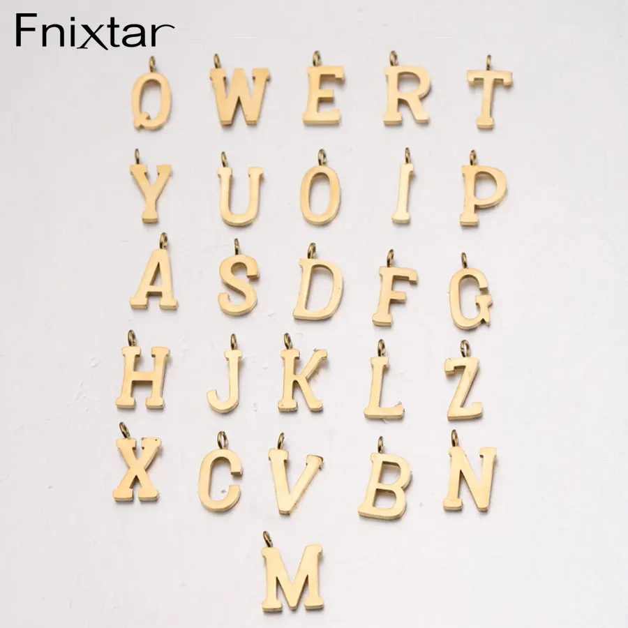 Fnixtar 26 шт винтажные золотые буквы амулеты зеркальная полировка из нержавеющей стали Шарм Для DIY изготовления колье с инициалами браслет ювелирные изделия