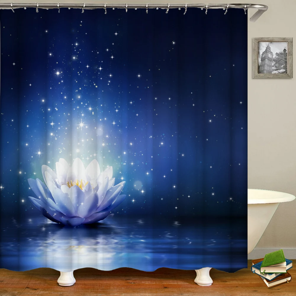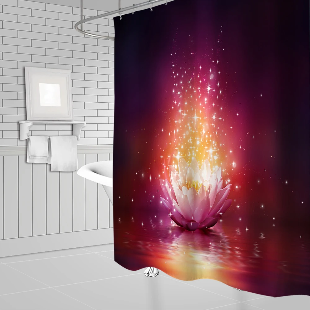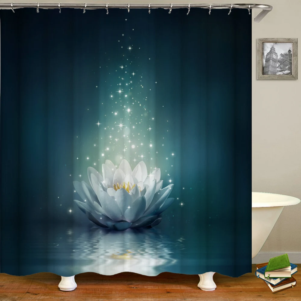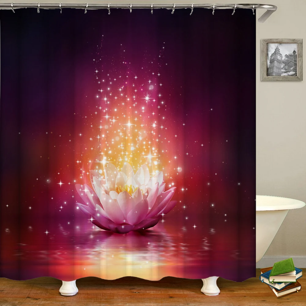 Водонепроницаемые шторы для ванной и душа, шторы с цветами лотоса, шторы для ванной с 3d принтом и крючками, 180*180, моющаяся ткань из полиэстера, Декор