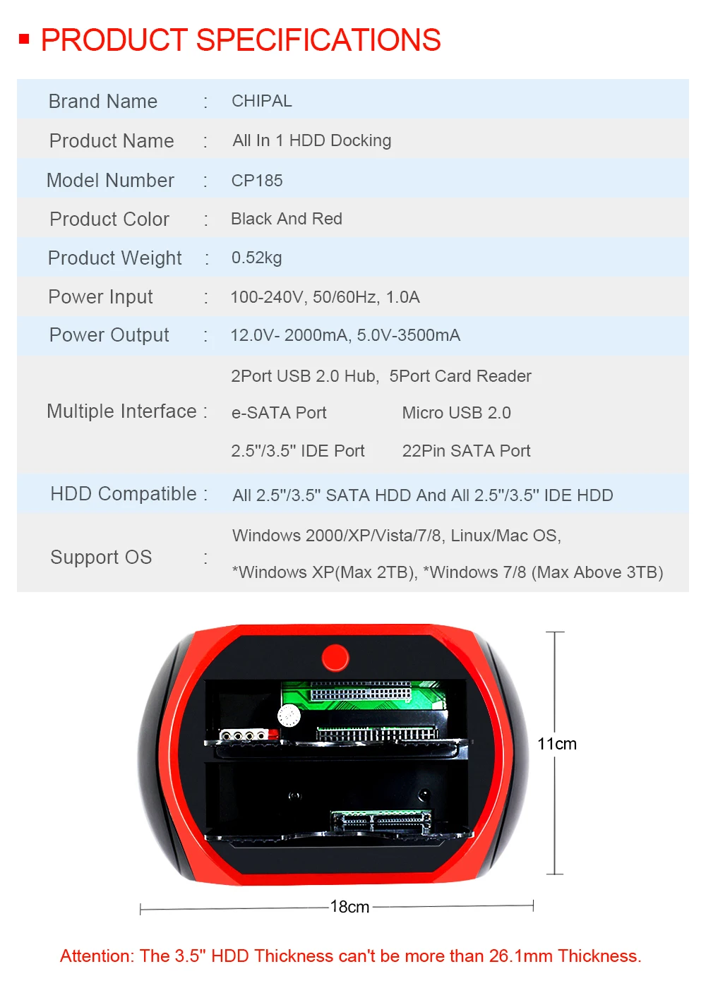 Внимание:3,5 корпус для жесткого диска Толщина не может быть больше, чем26,1 ммТолщина.