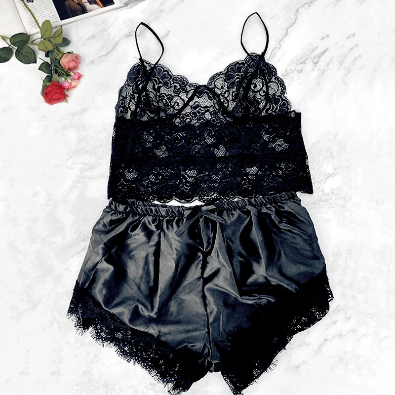 Женское нижнее белье, кружевные пижамы, комплект из 2 предметов, се...