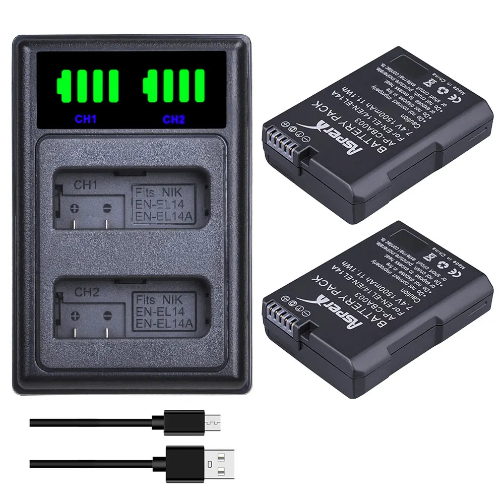 2 шт. EN-EL14 EN-EL14A EN EL14A EL14 для Nikon D3100 D3200 D3300 D3400 D3500 D5600 D5100 D5200 P7000 батарея + зарядное устройство USB