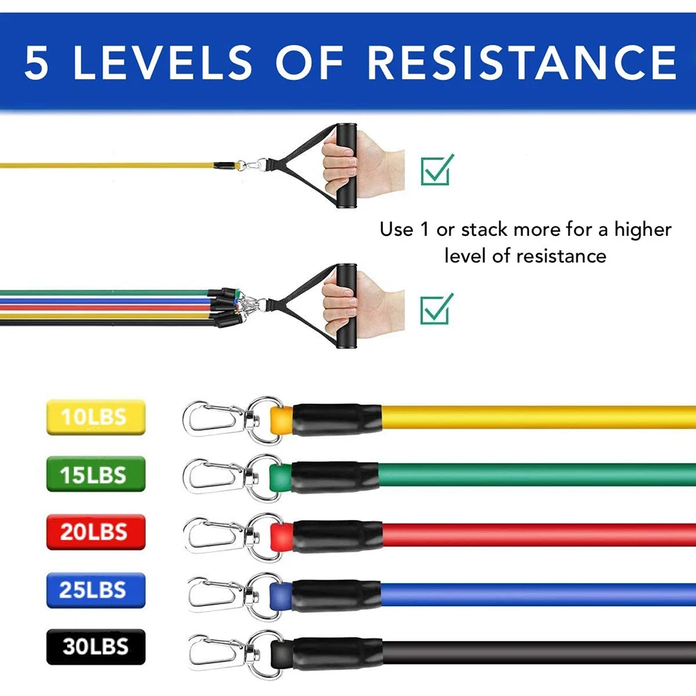 Спортивные Эспандеры, фитнес, растяжка, тренировка ленты до 115 фунтов, с 5 фитнес-трубками, для дома, спортзала, йоги, для мужчин и женщин