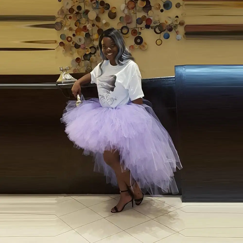 Светильник-фиолетовая Пышная юбка-пачка для вечеринки, юбка с высоким и низким слоем тюля, Женская длинная юбка для выпускного вечера, на заказ