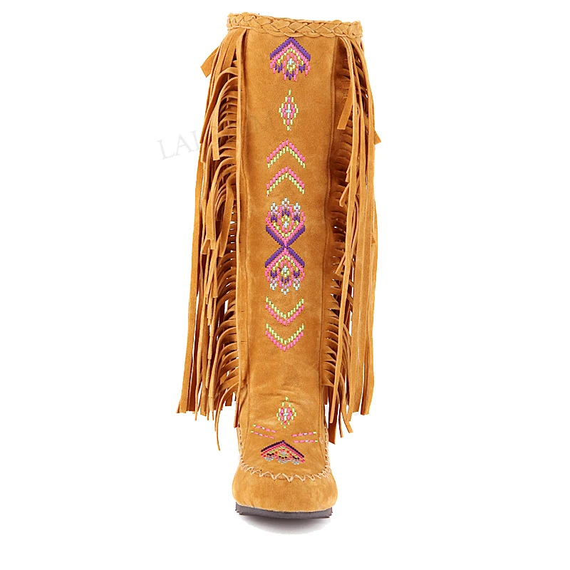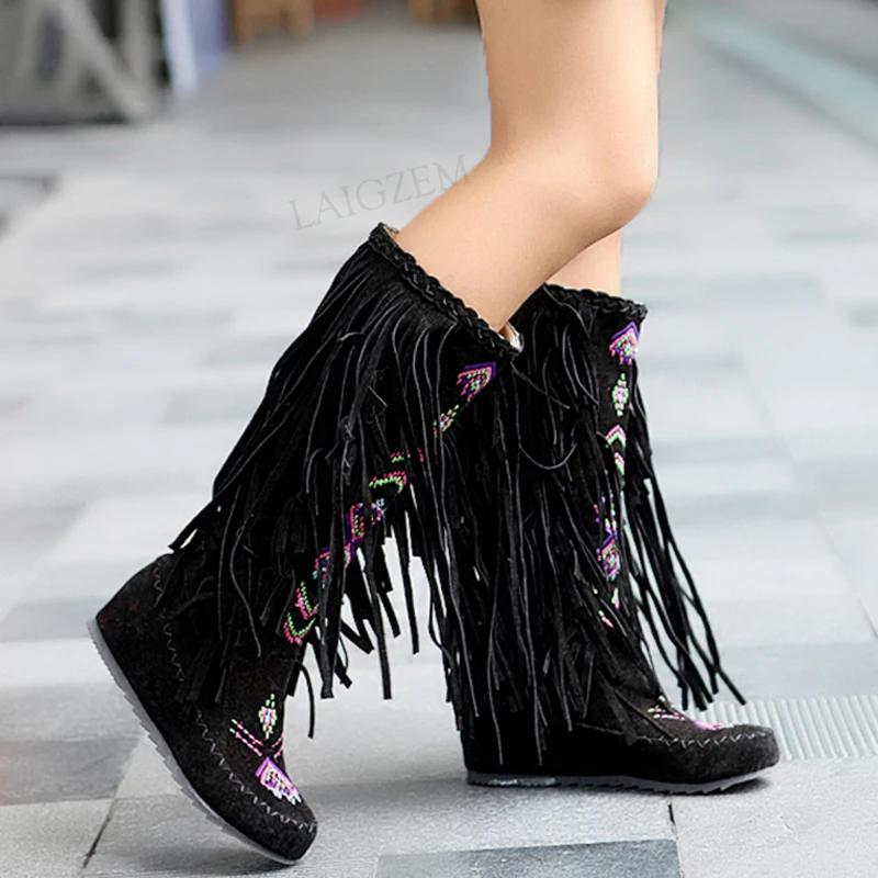 Женские ботинки с бахромой, на плоской подошве, с вышивкой, большие размеры 38, 39, 42, 43