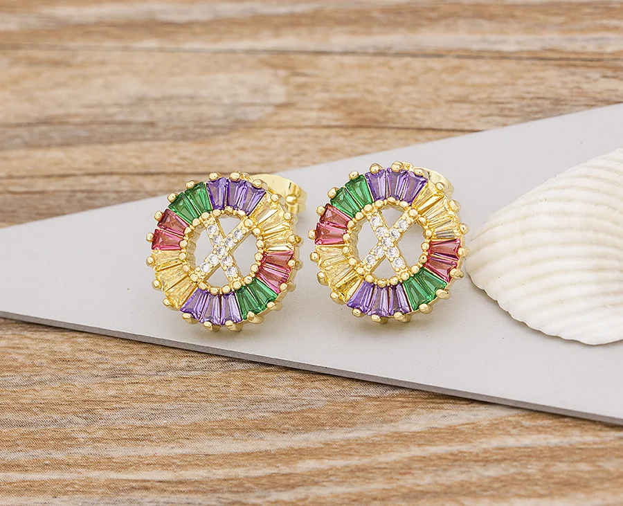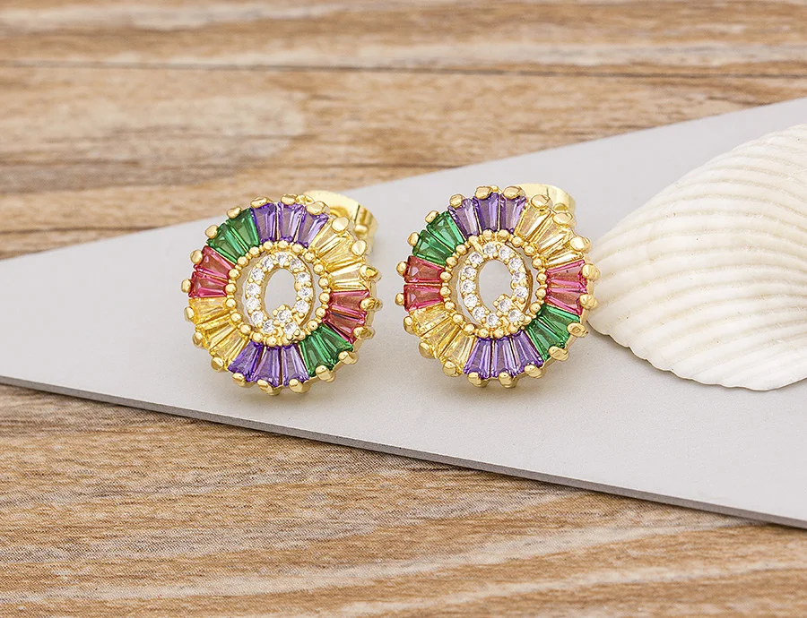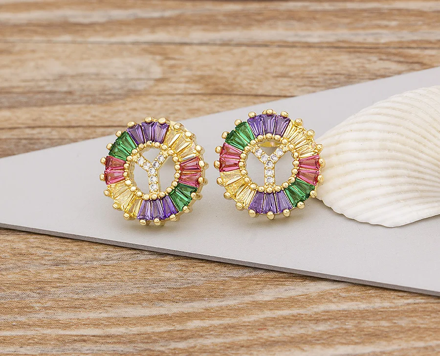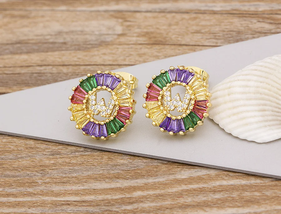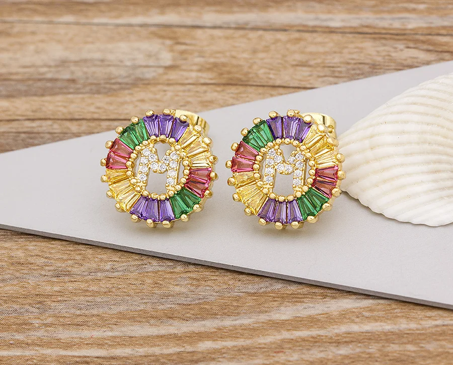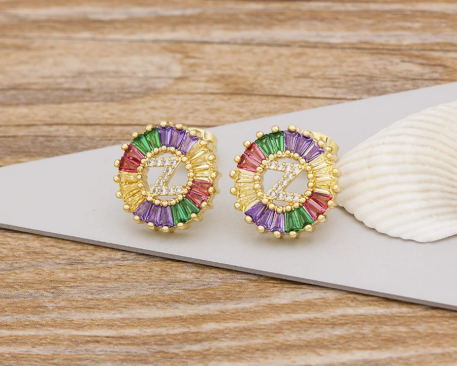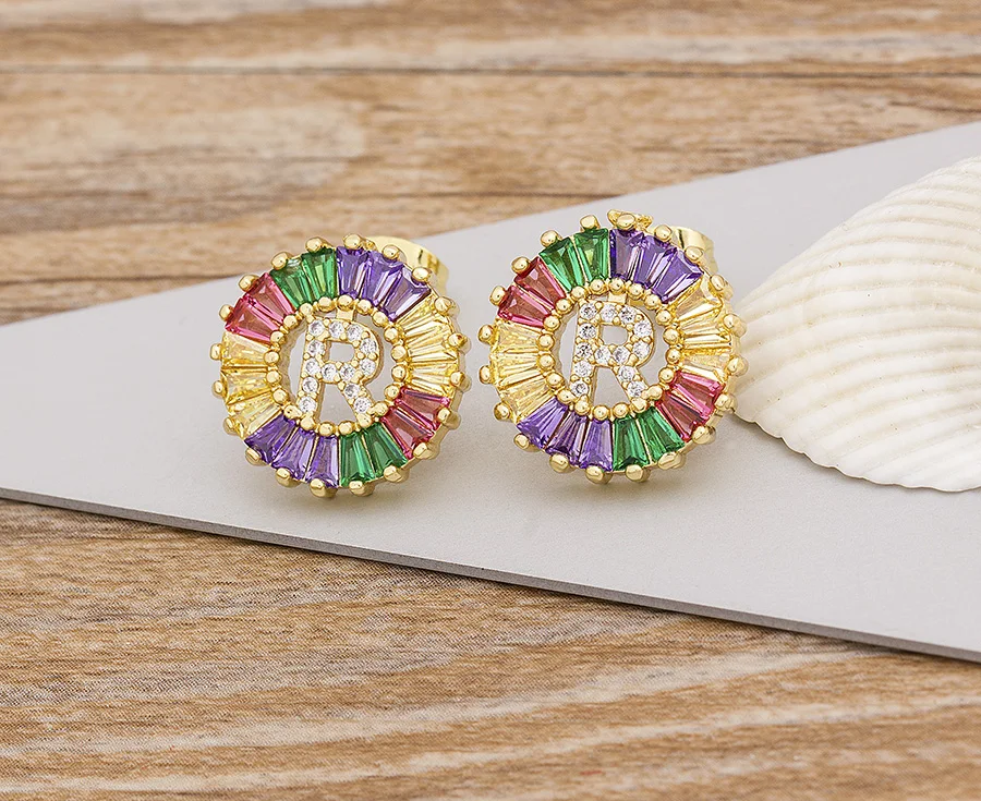 2020 Лидер продаж Радуга 26 Начальная буква сережки ввиде Ювелирное Украшение с качественным фианитом Алфавит A-Z имя серьги гвоздики творческий, модное ювелирное изделие