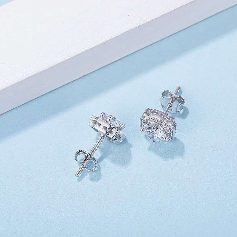 Серьги женские из белого золота с мусанитом, 6 Зубцов, 5 мм, 6 мм