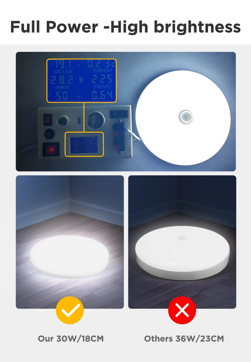 Светодиодный потолочный светильник с датчиком движения, 1215203040 Вт, 220 В, светодиодный потолочный светильник для кухни, современный светильник для гостиной