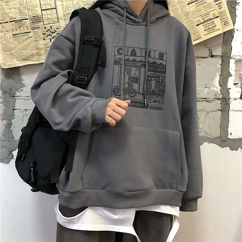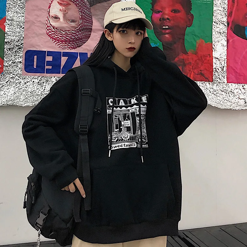 Женские толстовки с капюшоном и принтом, утепленные, бархатные, уни...