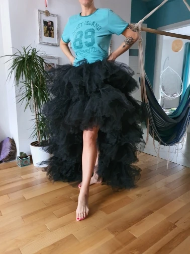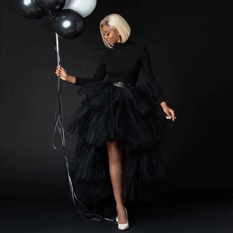 Шикарная черная пышная вечерняя юбка-пачка с высоким и низким вырезом юбка из тюля многослойная женская длинная юбка для выпускного вечера на заказ