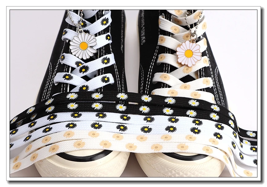Шнурки для обуви с маленькими маргаритками и мультяшным принтом, модные плоские шнурки унисекс для обуви с высоким верхом, холщовые шнурки для кроссовок, спортивные шнурки AF1