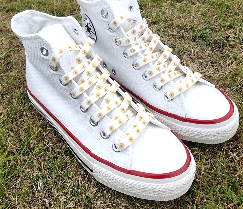 1 пара шнурков для маленьких маргариток с мультяшным принтом, унисекс, плоские шнурки, высокие холщовые кроссовки, шнурки AF1, белые шнурки