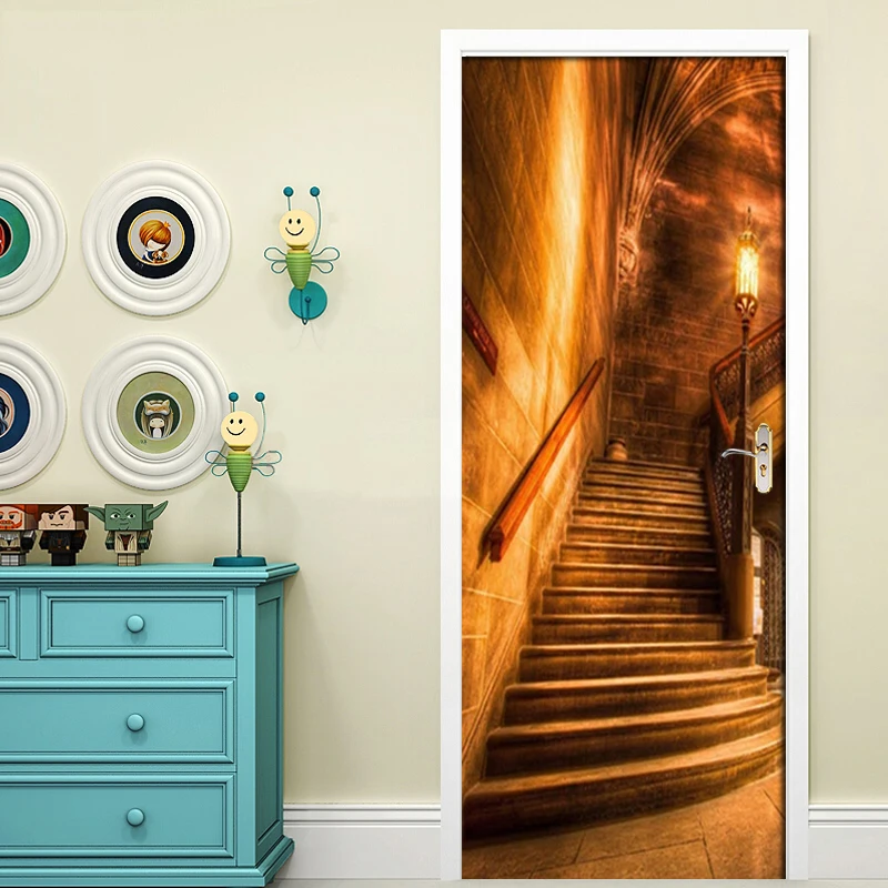 Самоклеящаяся ПВХ наклейка на дверь, инструменты для украшения обоев, золотой коридор, лестница, фотообои для гостиной, двери, домашний декор