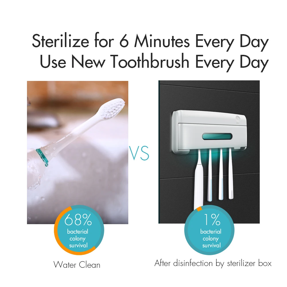 1. Стерилизатор для дезинфекции зубных щеток: ультрафиолетовые стерилизаторы разбивают зубные щетки большим количеством ультрафиолетовых лучей, которые специально используются для уничтожения бактерий, вирусов, мелких жуков, форм, формы и многие другие микроорганизмы, которые растут и размножаются в волосах зубной щетки.