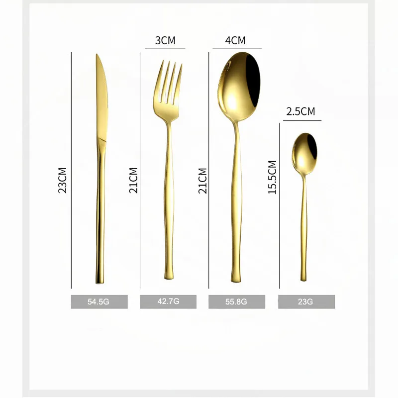 Столовые приборы из нержавеющей стали для кухни, столовые приборы, ложки, вилки, ложки, ножи, столовые приборы, набор золотистой посуды, экологичный Информация о продукте Изготовлено из высококачественного материала из нержавеющей стали, посуда прочная и прочная, не ржавеет. Простота в использовании и чистоте-Безопасная Посудомоечная машина; Подходит для использования дома, вечерние, в отеле, в ресторане, в подарок, на день рождения, в кемпинге. NEW-SN всегда здесь, чтобы помочь, не стесняйтесь обращаться по электронной почте или по любым вопросам или проблемам. О размере 1 × длина ножа: 23 см/54,5 г 1 × длина обеденной ложки: 21 см/55,8 г 1 × длина вилки: 21 см/42,7 г 1 ×Tea ложка Длина: 15,5 см/23 г О чистке Используйте нейтральное моющее средство, чтобы промыть его, пожалуйста, никогда не используйте сильные щелочные или сильные Окисляющие химические вещества, мойте их. После очистки столовых приборов, пожалуйста, сделайте их сухими и держите столовую посуду чистой и сухой. О товарах Если у вас есть какие-либо проблемы с вашей покупкой, пожалуйста, напишите нам, и мы ответим своевременно. После получения товаров, если у вас есть какие-либо проблемы, свяжитесь с нами, и мы решим вашу проблему. Об использовании В посуда подходят для всей семьи, вечерние, пикников на открытом воздухе, походов, поездок и использования в офисе, а также отличный подарок для вашей семьи и друзей.