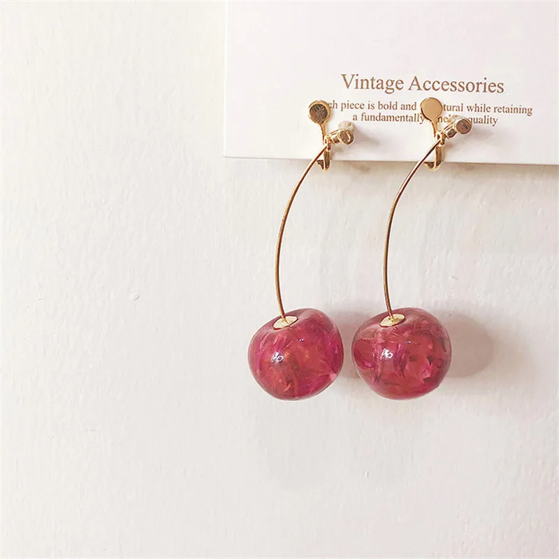 3D красные черные милые вишневые висячие серьги с милыми фруктами золотые серьги-подвески бриллиантовые подарочные серьги для женщин и девушек