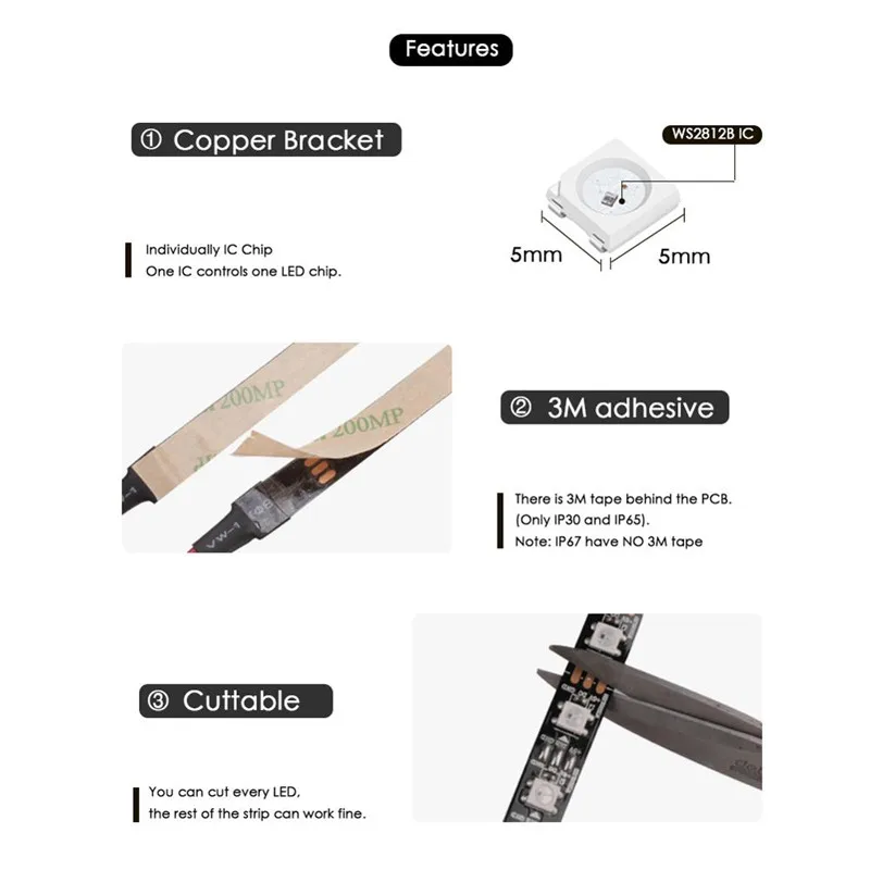 0,5-1 мпартия WS2812B WS2812 светодиодный светильник с черно-белой печатной платой водонепроницаемый IP306567 DC5V