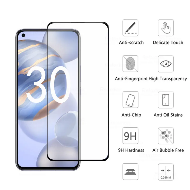 Закаленное стекло, для huawei honor 30 premium 30 5G, защита экрана с полным проклеенным покрытием huavei honer xoner 12