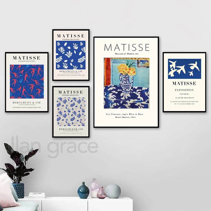 Абстрактная живопись Анри матиссе, красные синие вырезы, коллаж, фигурки, художественный постер, холст, картина, галерея, настенное искусство, Декор