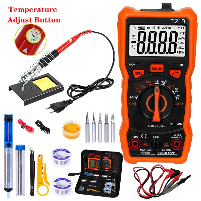 Паяльник для подключения к Наборы 80W 220V Регулируемый Температура Цифровой мультиметр Авто RangingLCD припой железа советы сварочный инструмент Наборы