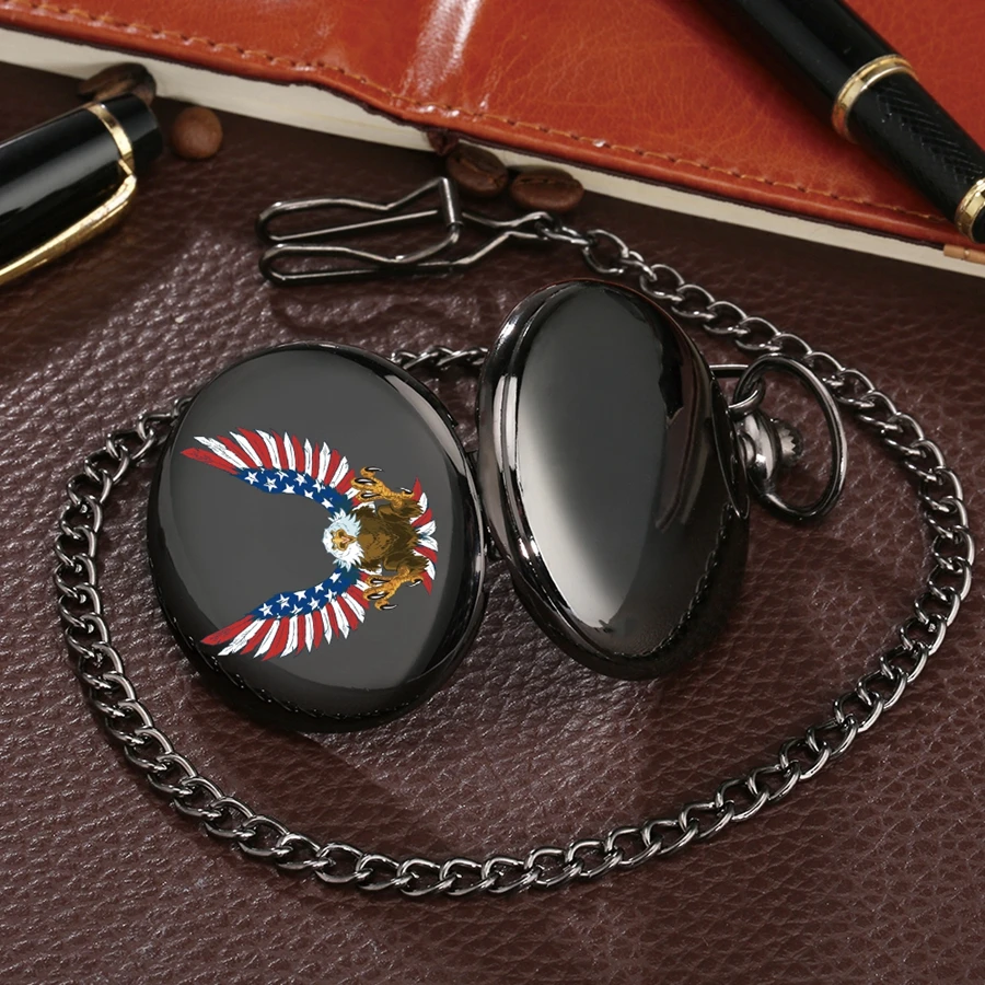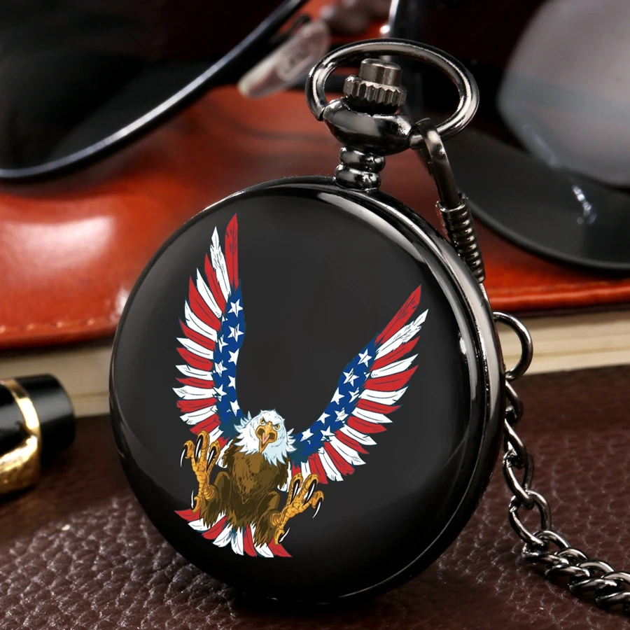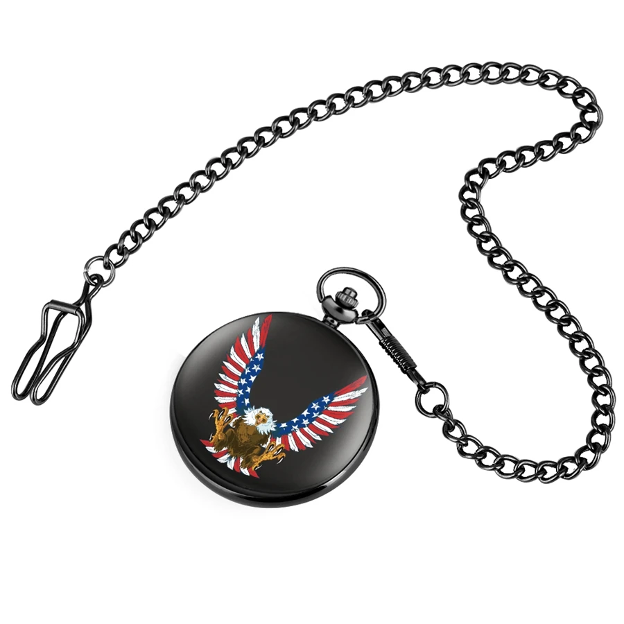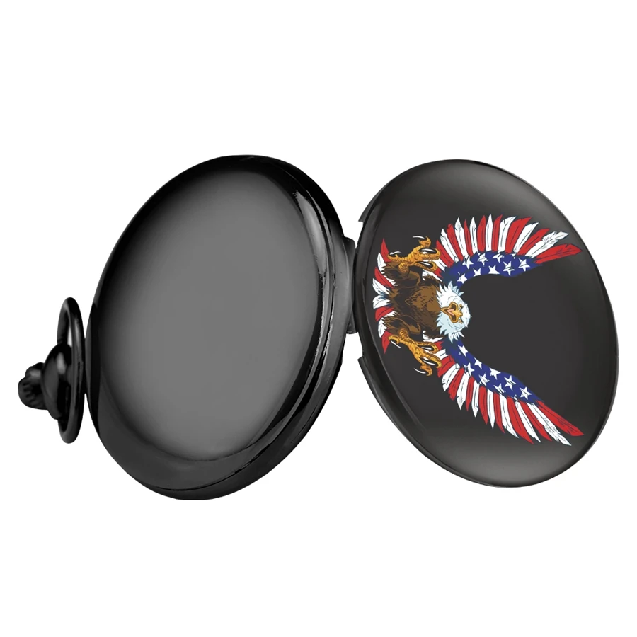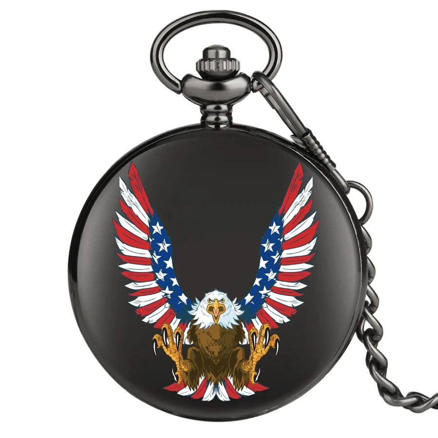 Часы карманные кварцевые мужские, женские, черные, мужские, с черным чехлом, в стиле стимпанк, модель с флагом США и орлом, 2020