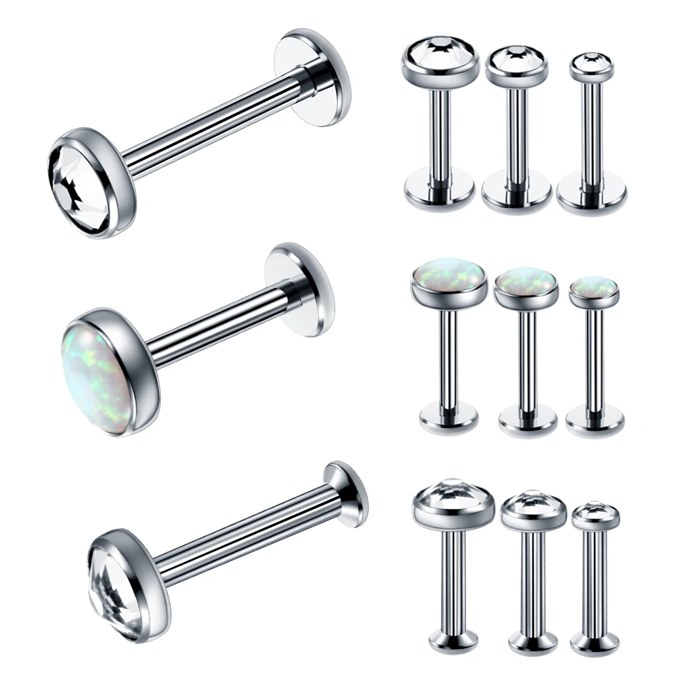 Кольцо для пирсинга женское с титановым опалом G23, ювелирное изделие для прокола губ с цирконом, внутренняя нить на закрепке, Козелка, завитка ушной раковины 16 г, 1 шт.