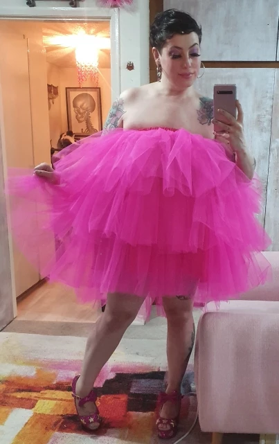 Женское Тюлевое платье-трапеция, шикарное короткое платье цвета фуксии с оборками, с открытыми плечами, лето 2020