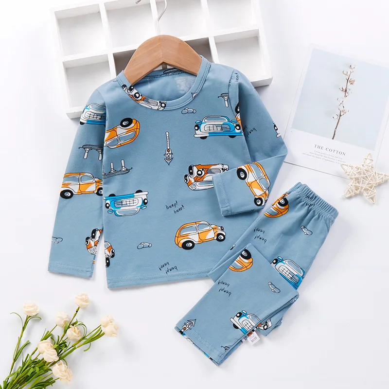 Новые детские пижамы, хлопковые пижамы для маленьких девочек, детские пижамы для мальчиков, осенняя футболка с длинными рукавами + штаны, пижамы